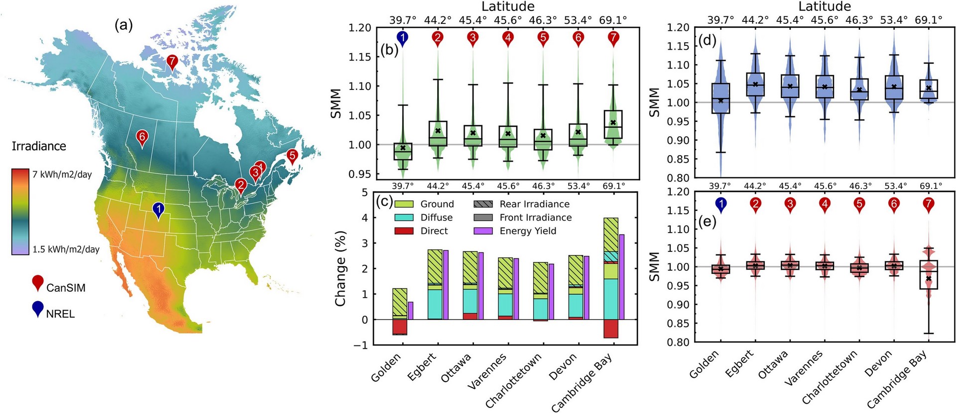 we study the importance of solar spectral irradiance for silicon bifacial PV performance prediction in seven North American locations. Bifacial energy yield is underestimated when spectral effects are neglected, primarily due to ground-reflected and diffuse light. Neglecting spectral effects can cause up to 0.6–2.7% underestimation of annual energy yield, with higher error at shorter timescales.