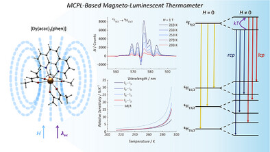 The application potential of magnetic circularly polarized luminescence (MCPL) techniques is showcased through the first demonstration of MCPL-based magneto-optical thermometry. With the presence of dual-signaled bands, and the combination of multiparametric thermal read-out with multiple linear regression, remarkable sensitivities of up to 30.6% K−1 are achieved with the [Dy(acac)3(phen)] complex at 293 K.