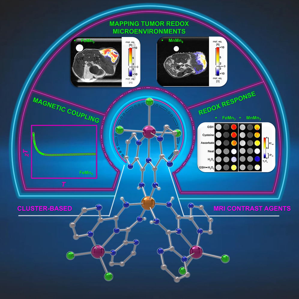 Transition metal molecular clusters hold great promise as magnetic resonance imaging (MRI) probes, where careful chemical design can afford control over the size, shape, and total spin state of the contrast agent (CA). Although such clusters can act as a single entity, exhibiting advanced in situ reactivity to key diagnostic biomolecules, their dissociation/speciation in biological media hinders their potential as MRI CAs. To resolve this, the N-2-pyrimidylimidoyl-2-pyrimidylamidine chelate was employed to selectively bind 3d metal ions, forming highly stable mixed-metal clusters.