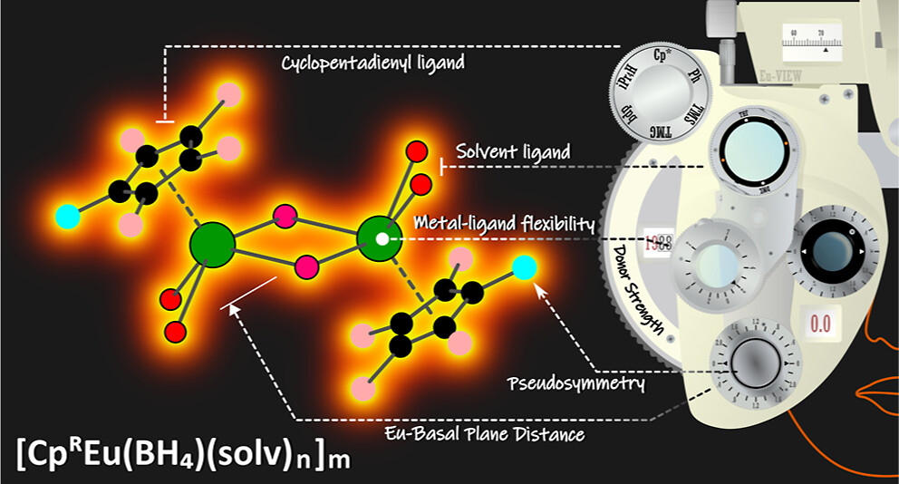 Three novel potassium cyclopentadienides featuring bis(dimethylamino)phosphinochalcogenoyl substituents containing sulfur, selenium, and tellurium, as well as their homoleptic complexes with EuII, were prepared and characterized. The chalcogen atom of these ligands coordinates to the lanthanide left and, in doing so, disfavours the coordination of solvent ligands. Photoluminescence studies show that the identity of the chalcogen atom has an important effect on the luminescence properties of the EuII complexes, as the emission is progressively quenched on going down the chalcogen group.