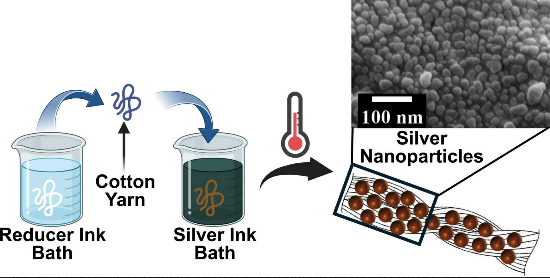 We have successfully developed a scalable method for impregnating cotton yarn with silver nanoparticles (AgNPs), presenting a cost-effective approach with potential applications in functional coatings, wearable electronics, biomedical applications, and smart textiles. Our study highlights several critical parameters that influence the growth and average size of AgNPs during their in situ synthesis on cotton yarn.
